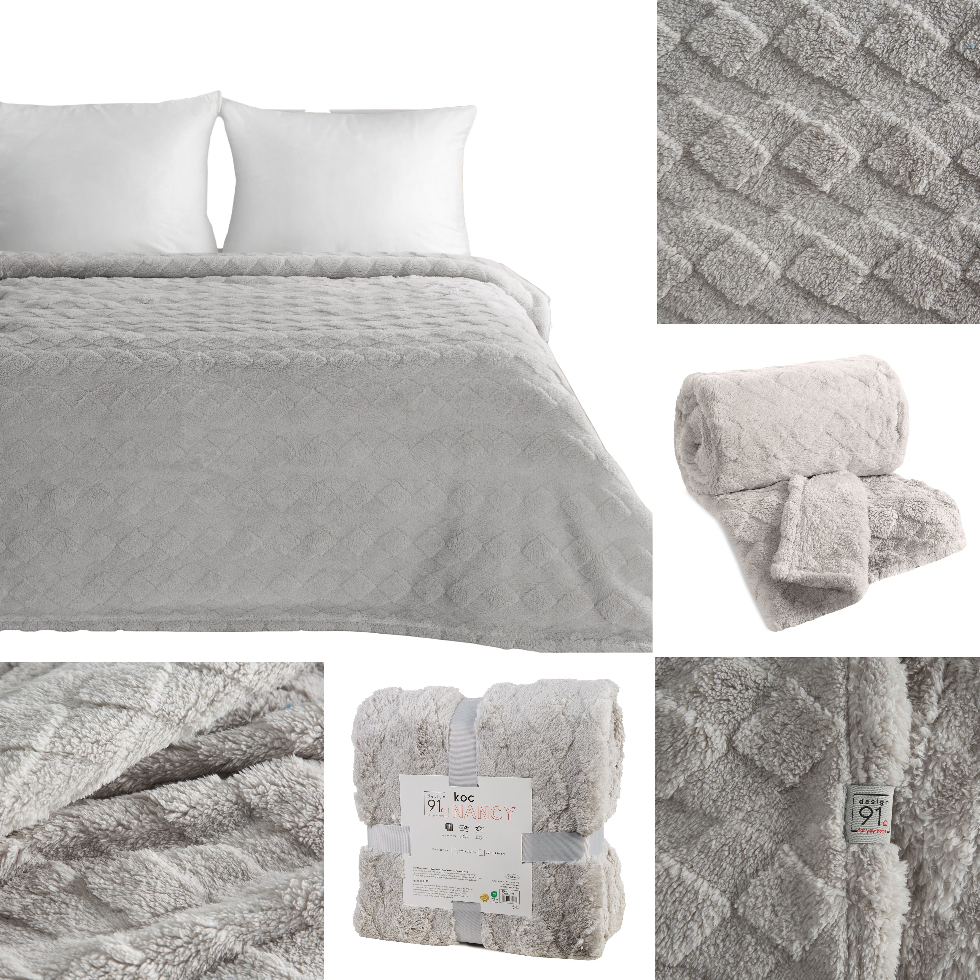 Koc Narzuta Flano 200x220 Eurofirany NANCY srebrny Gruby Ciepły Na Kanapę