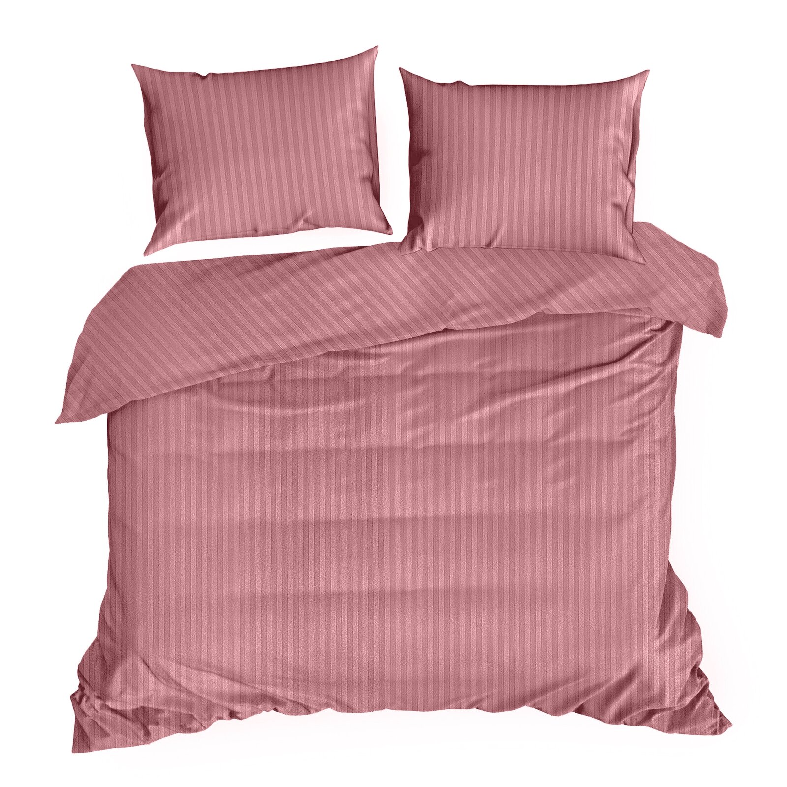 Pościel Bawełniana W Prążki 160x200 VERA różowy Komplet Eurofirany Hotelowa