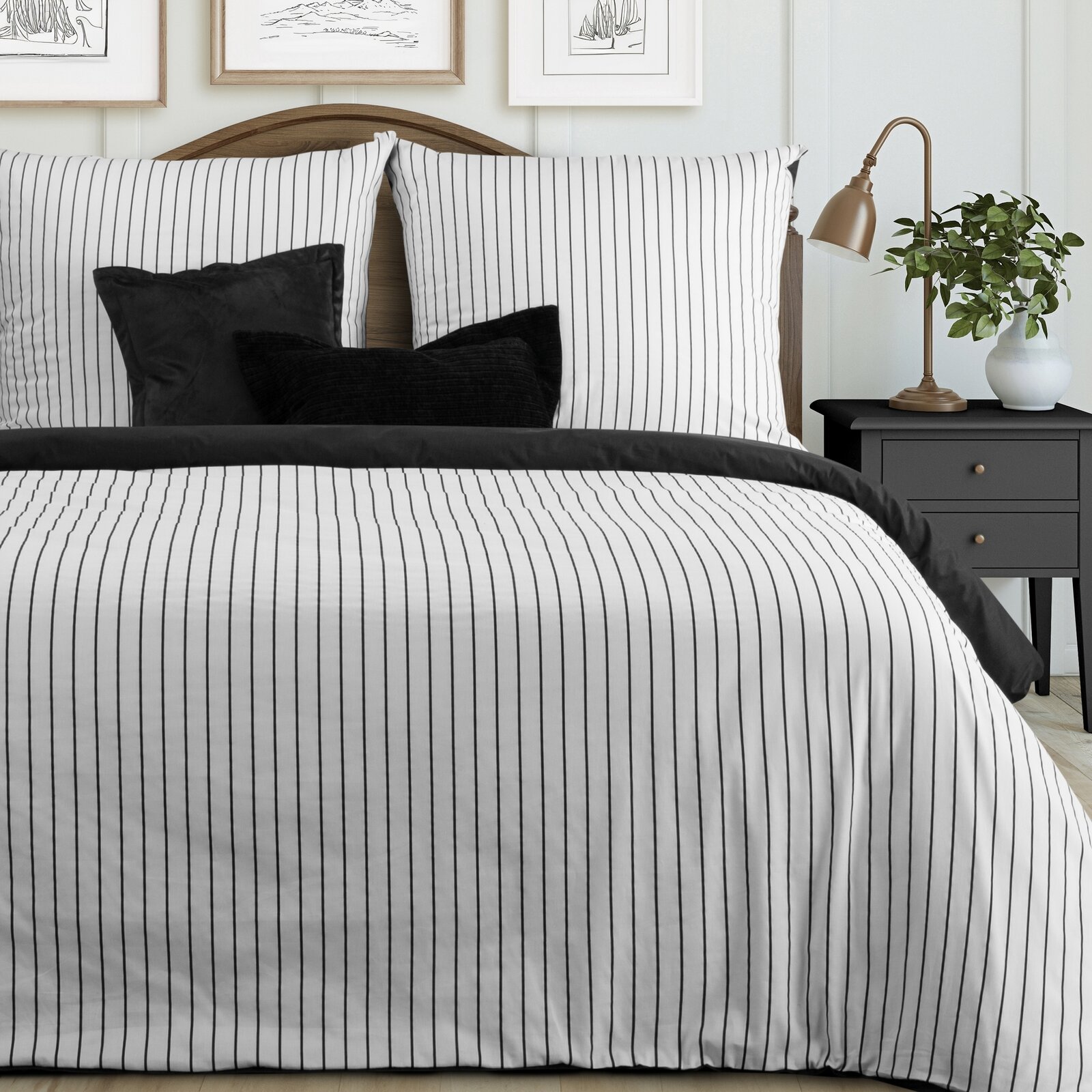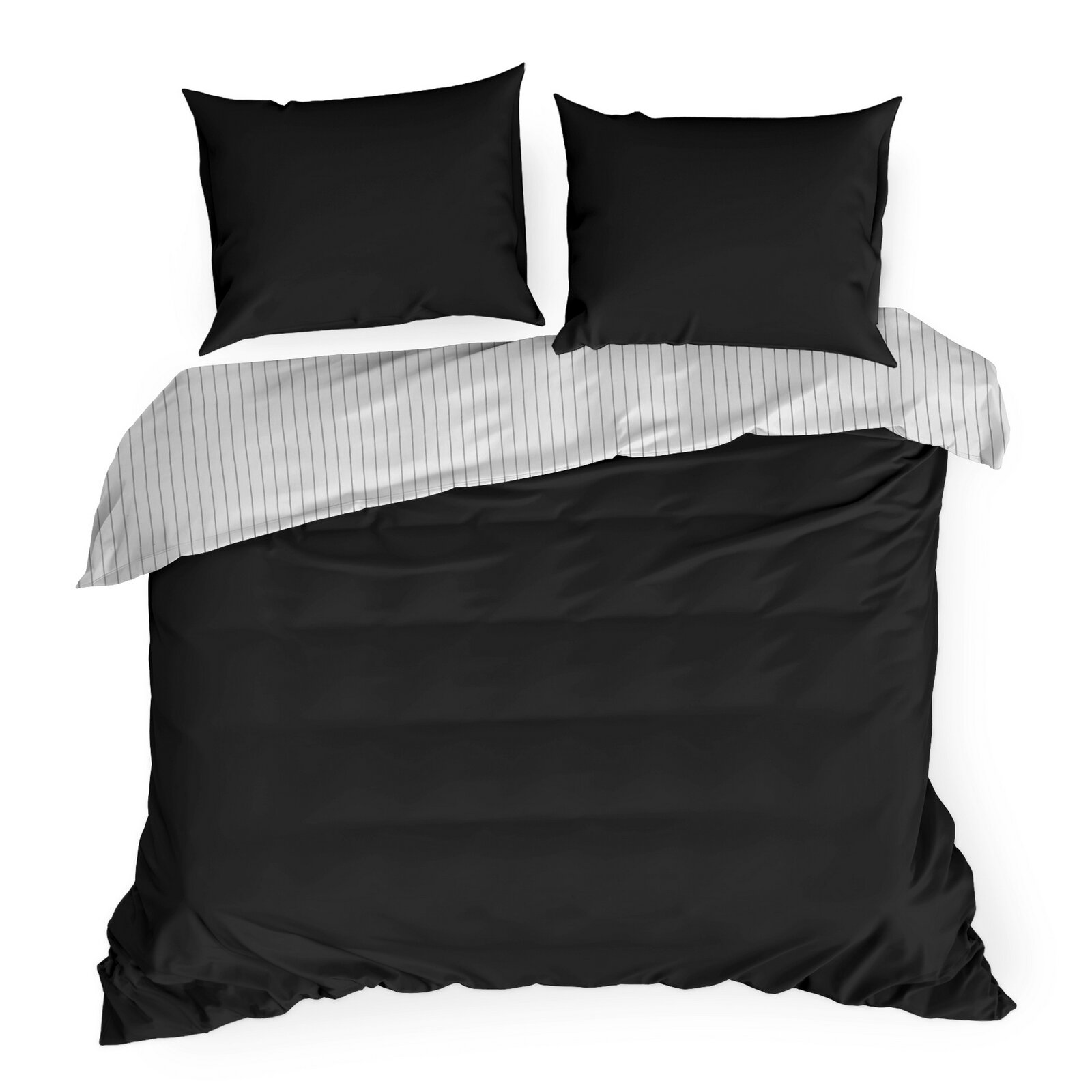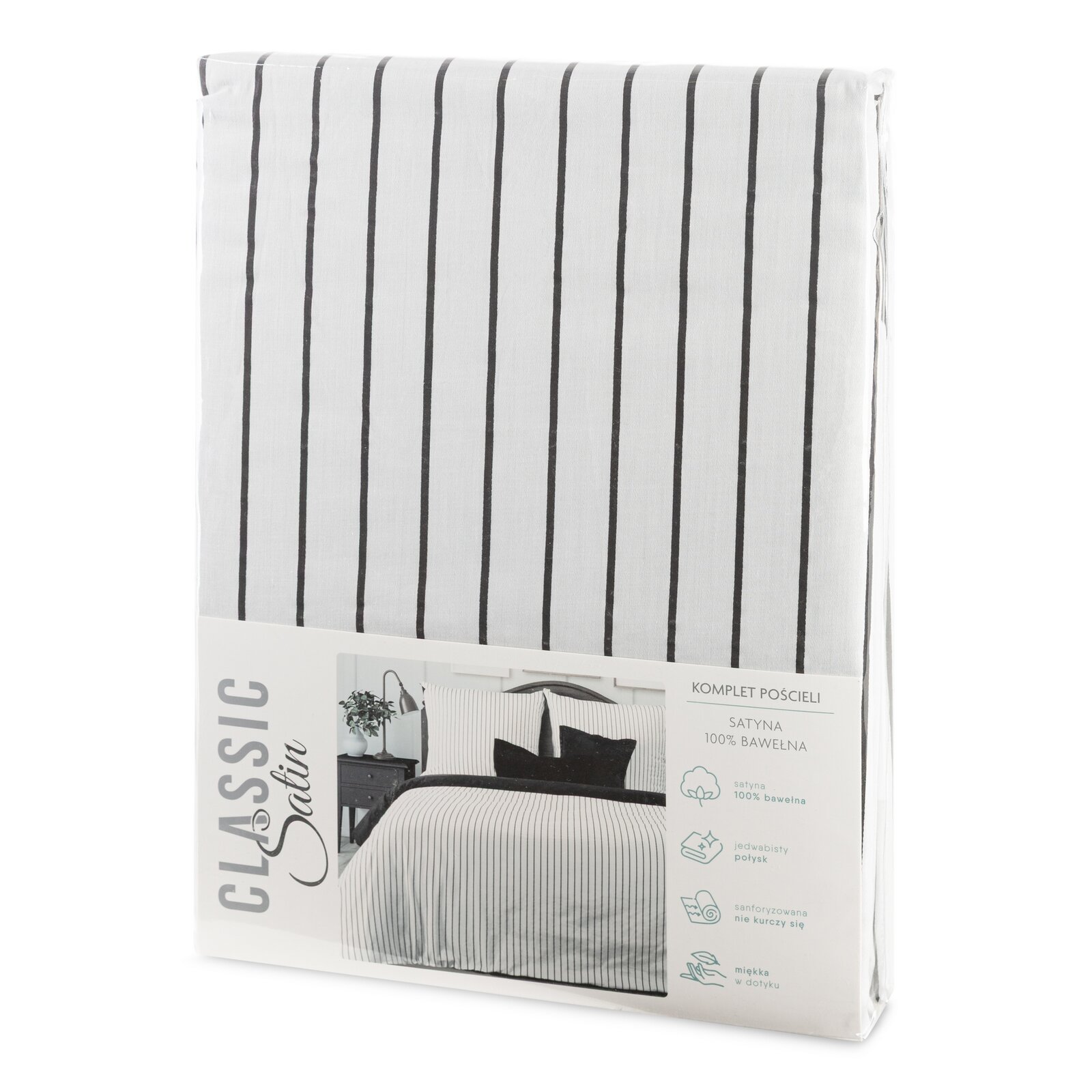 Pościel Satynowa 160x200 RAYA biały+czarny Eurofirany Dwustronna W Paski