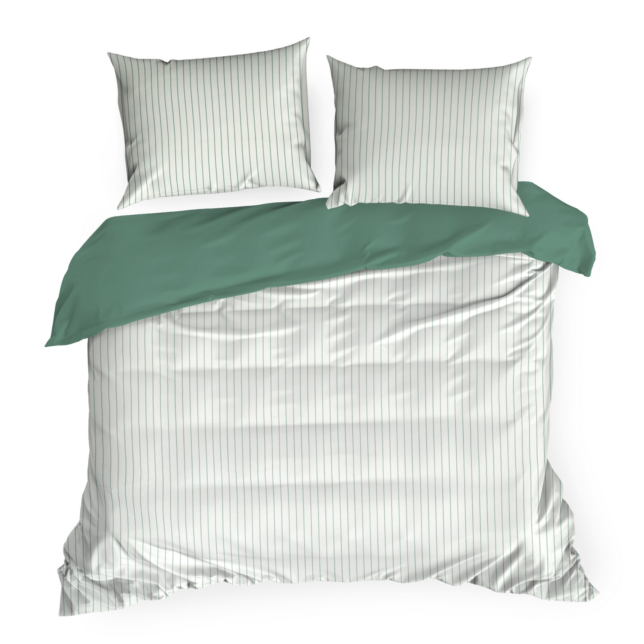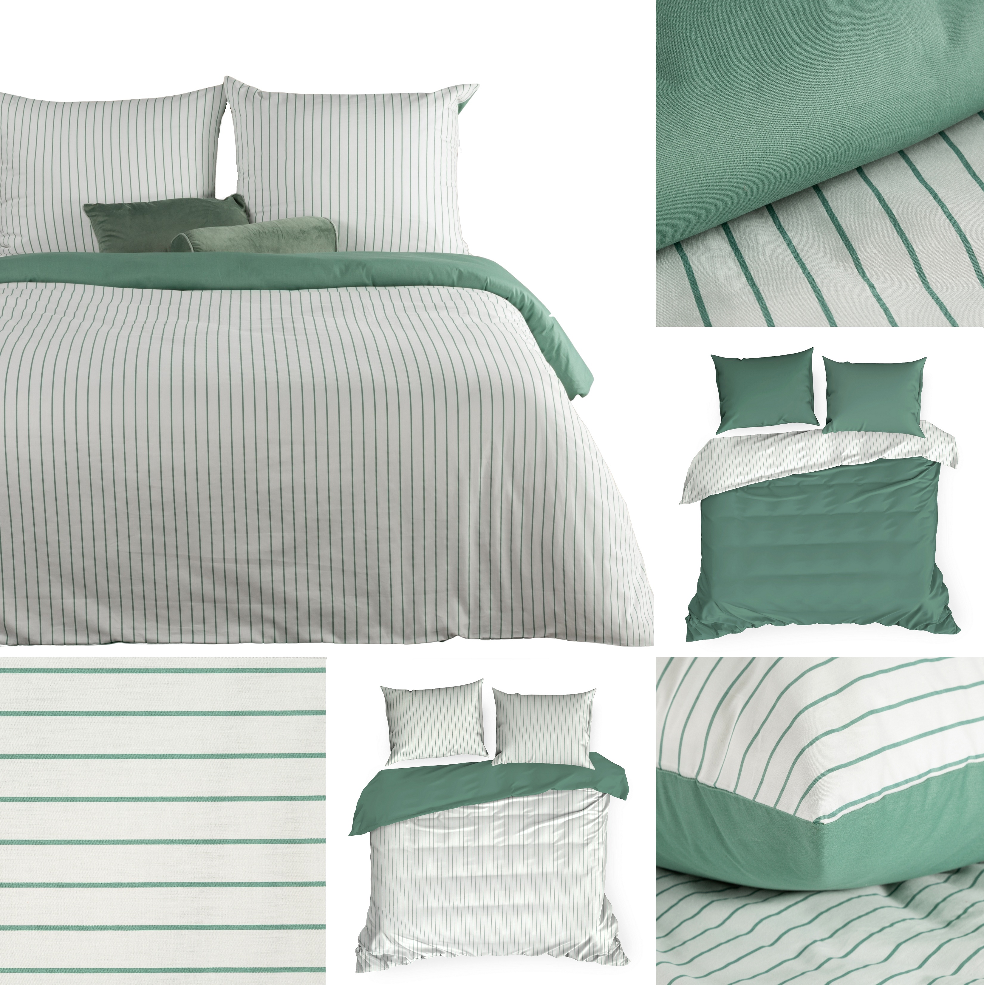 Pościel Satynowa 160x200 RAYA biały+mięta Eurofirany Dwustronna W Paski